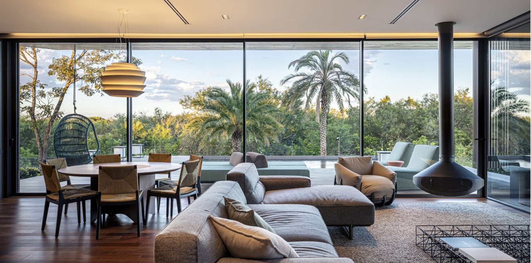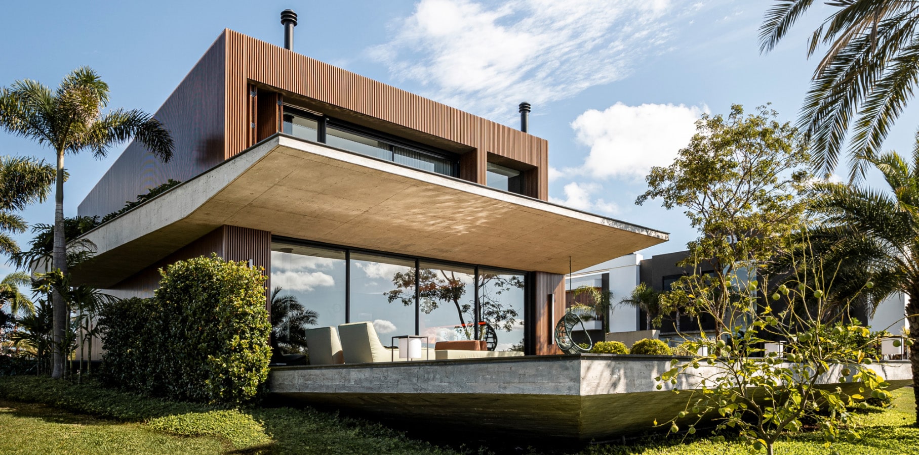 Com 450 m², localizado em Eldorado do Sul/ RS, o projeto arquitetônico partiu do desejo dos clientes de estarem próximos à água, em uma casa que valorize a vista para a cidade e a privacidade em relação à rua.