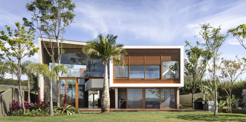 O desencaixe entre os volumes permite que a insolação banhe a parte sul da construção. Uma passarela otimiza a circulação horizontal e vertical. A aposta nessa estrutura configurou a evolução de um simples corredor que agrega a vista panorâmica do segundo pavimento. A Casa Angular foi vencedora do Concurso Veka Latin America em 2018.