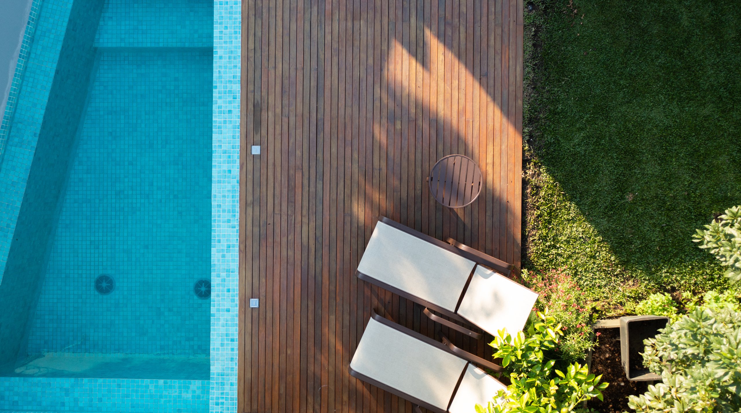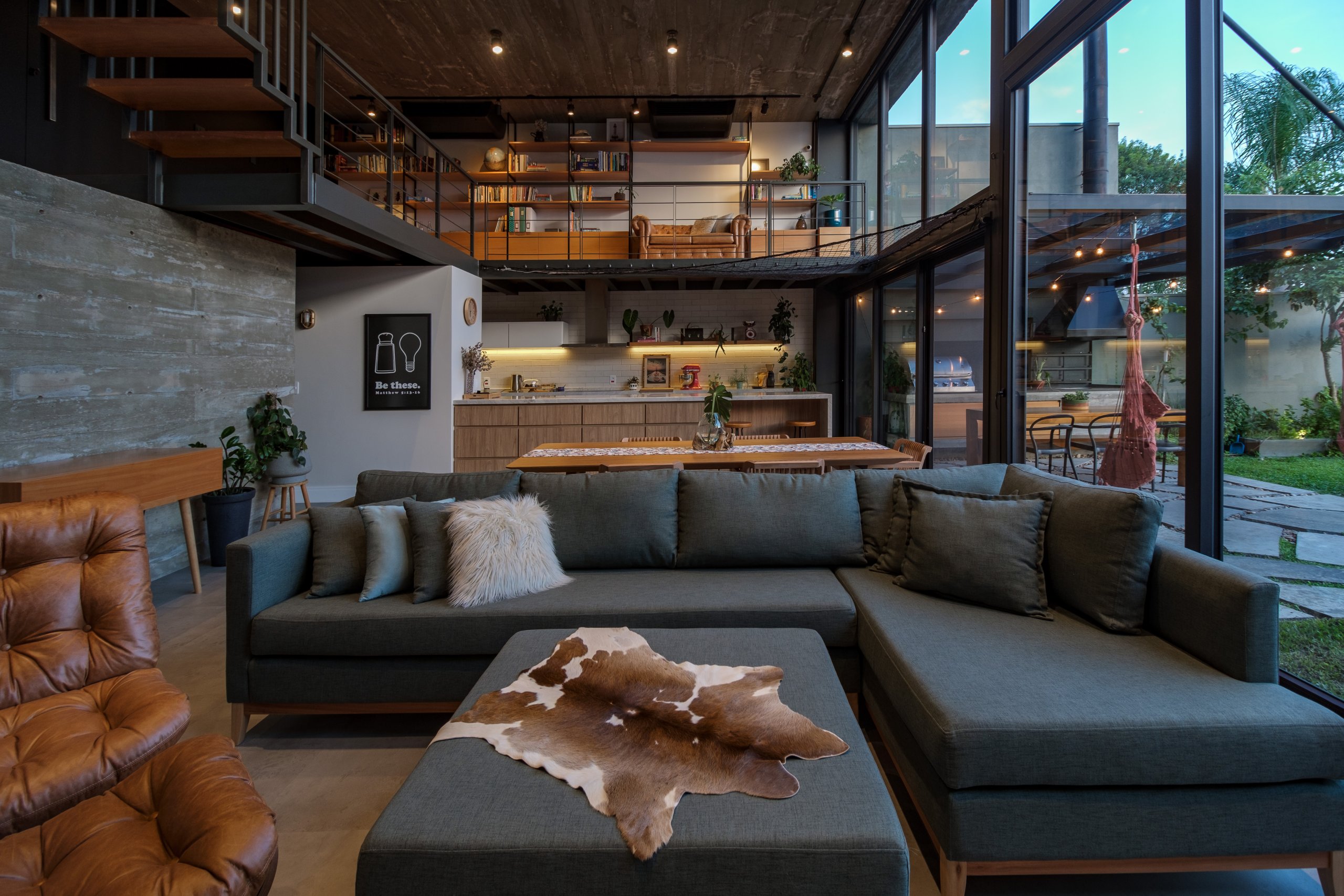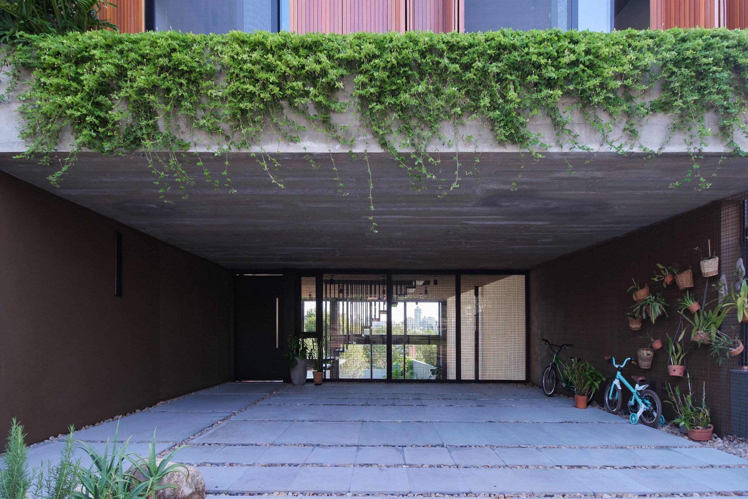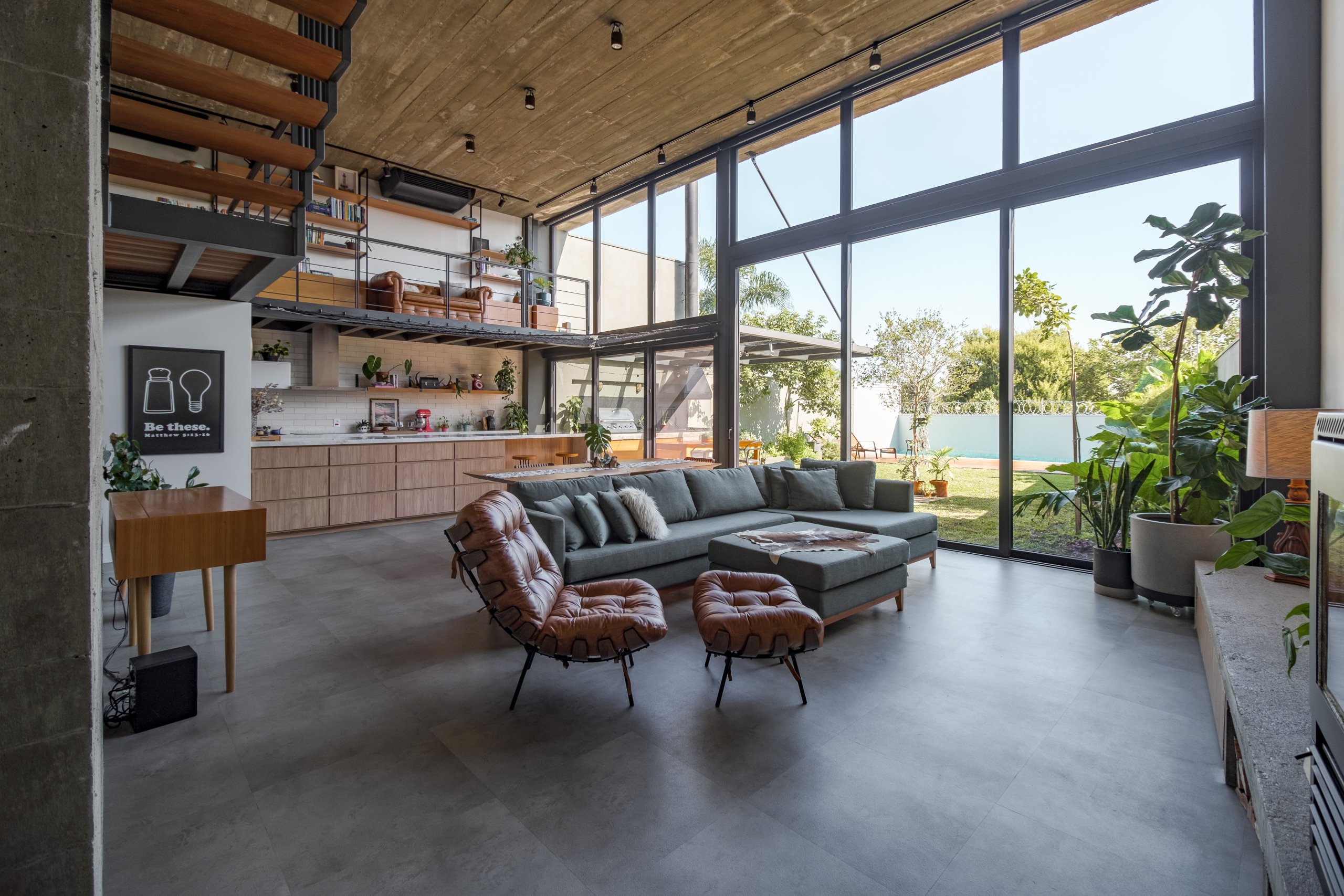 A Casa Flor foi concebida para um lote com acentuado declive em frente à uma praça no bairro Chácara das Pedras. Proporcionar integração entre a praça e a vista, ao fundo do terreno, foi a premissa do projeto, distribuído de maneira não convencional em três pavimentos. Dormitórios e estar íntimo ocupam o pavimento superior, para a cozinha e área social com pé-direito duplo foi reservado o pavimento inferior integrado ao pátio, e no nível da rua, o pavimento intermediário, com garagem e acesso, garante a transparência da frente aos fundos da casa. A biblioteca, no mezanino, funciona como ponto de convergência entre todos os ambientes.