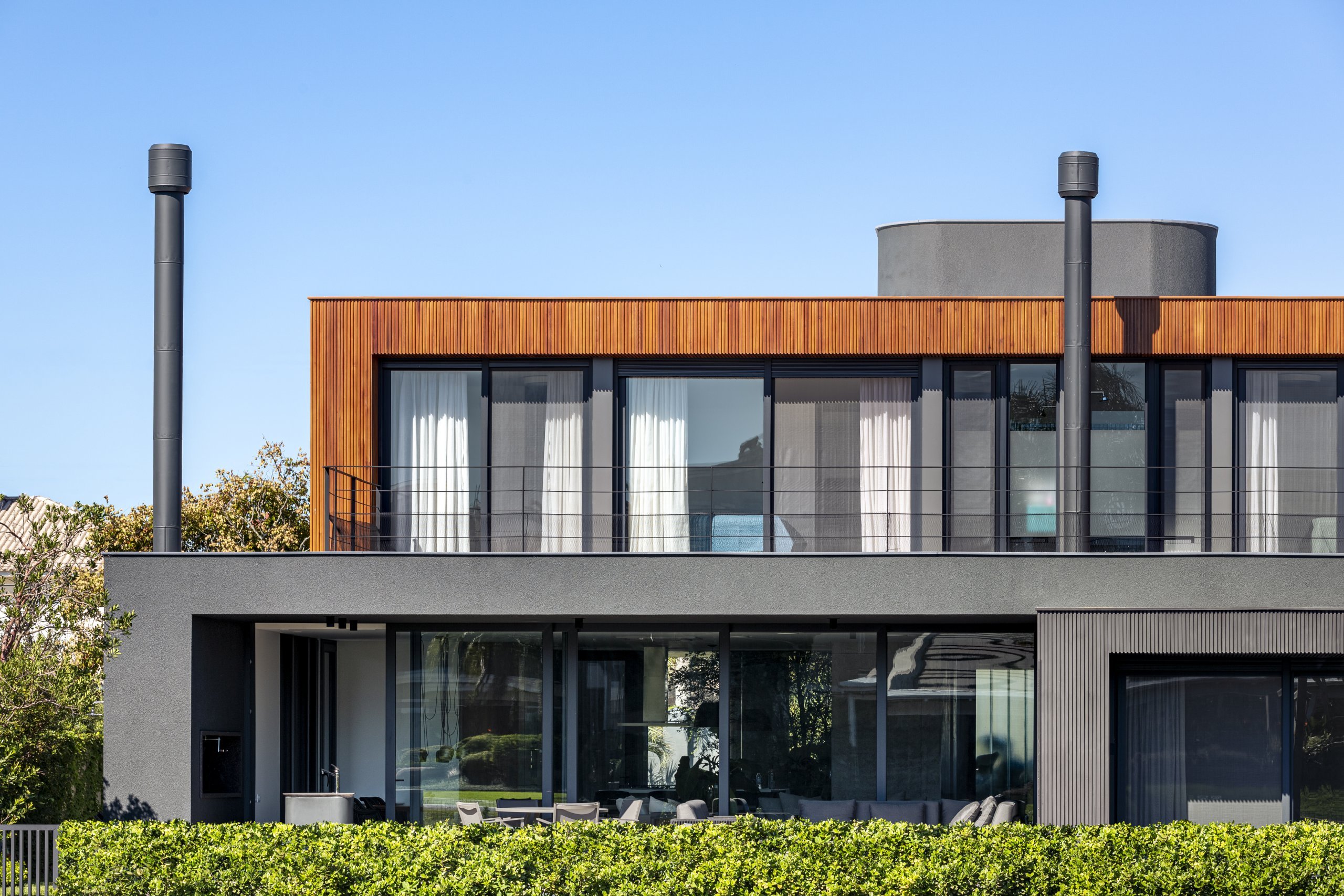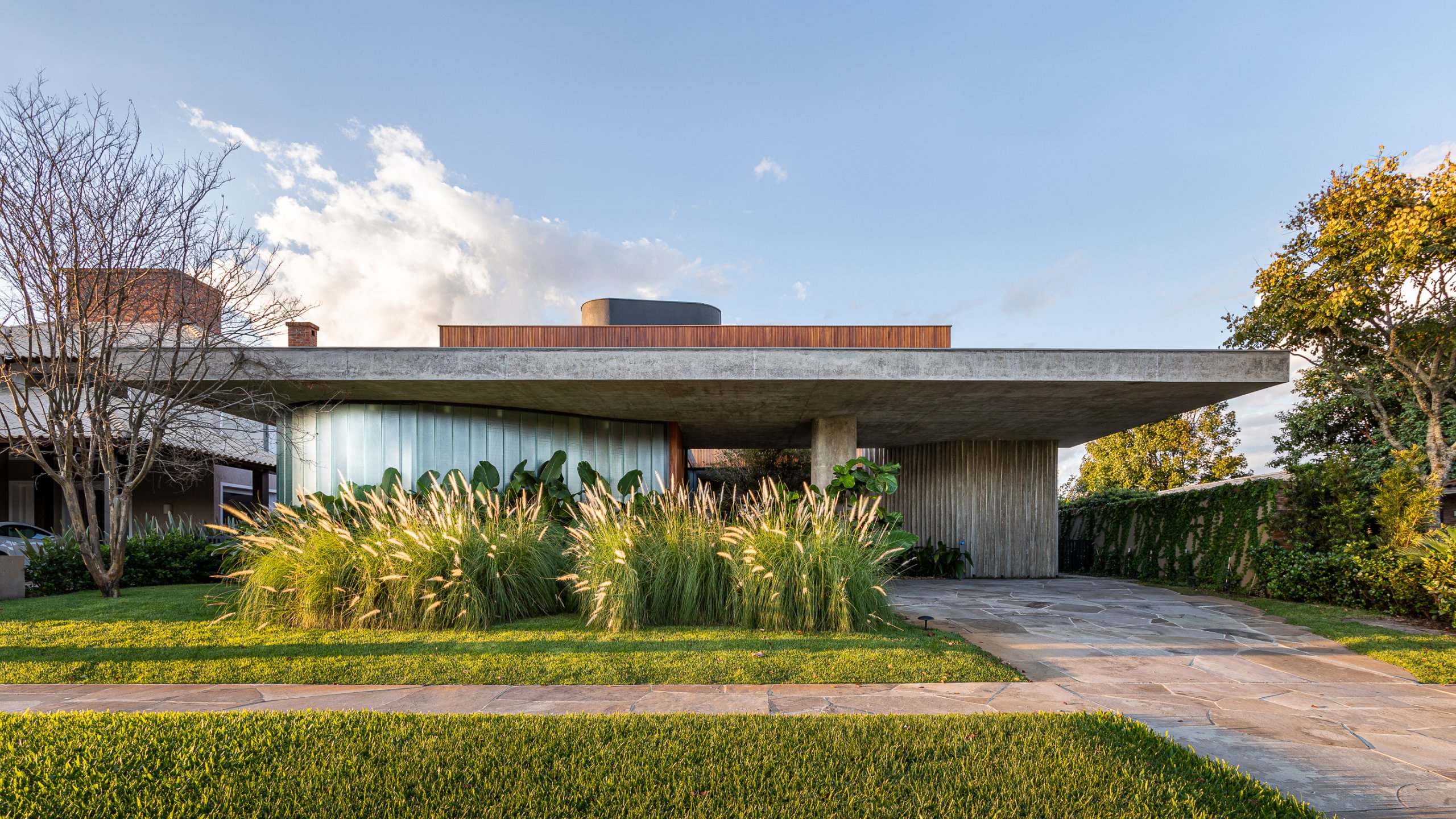 Vários deles interligam suavemente os diversos setores que compõem a casa de 407 m² localizada em Xangri-lá/RS.