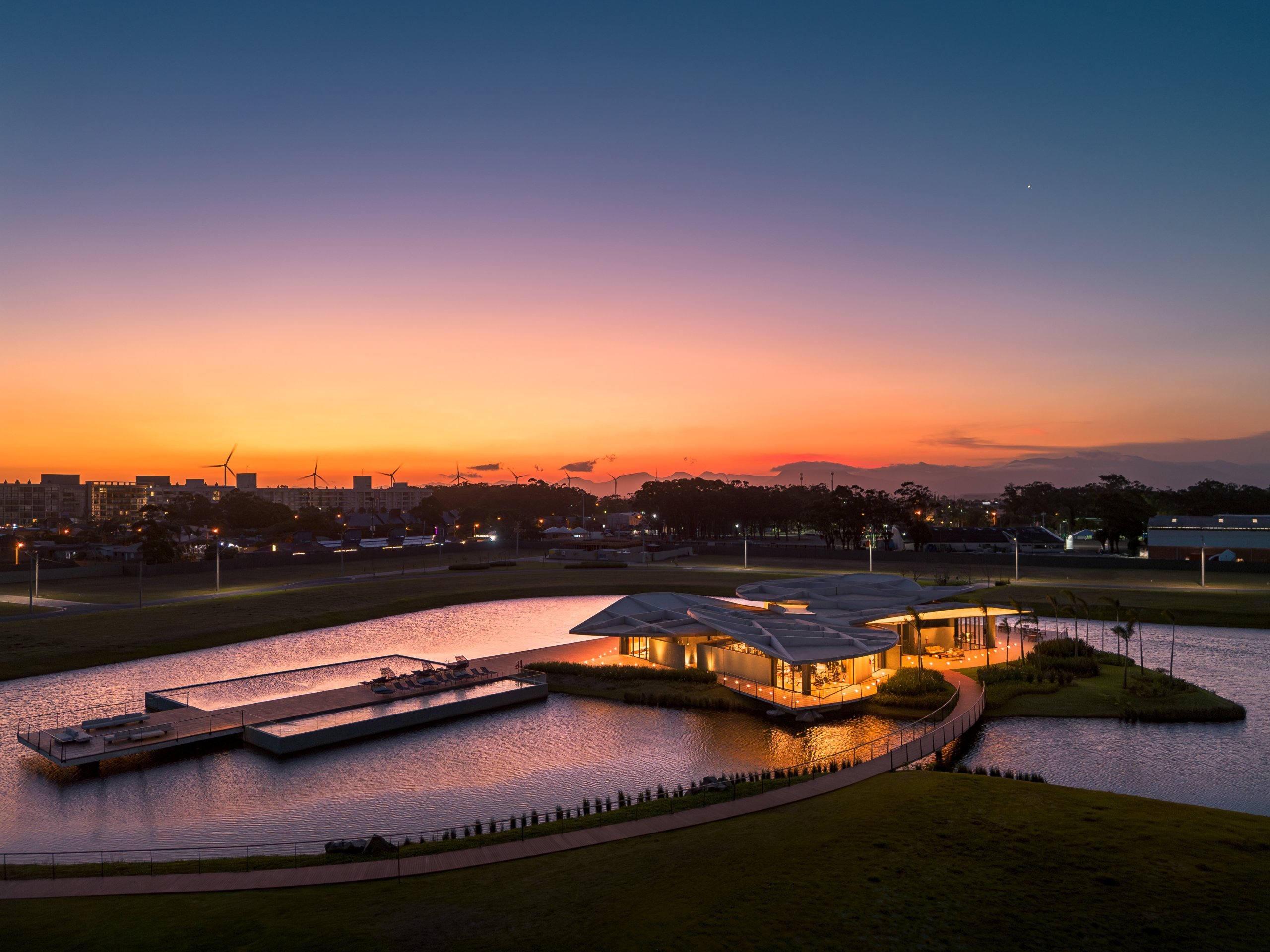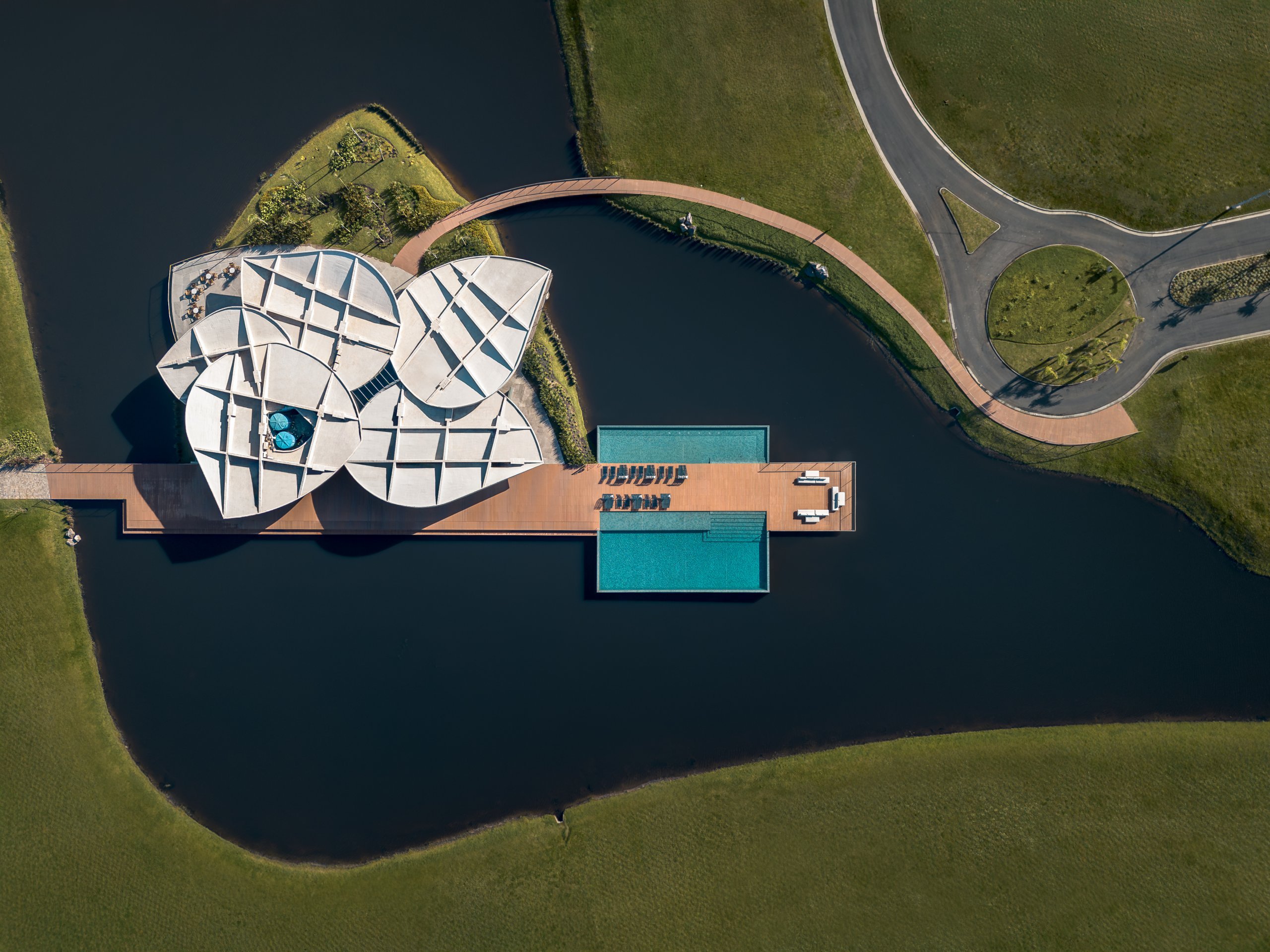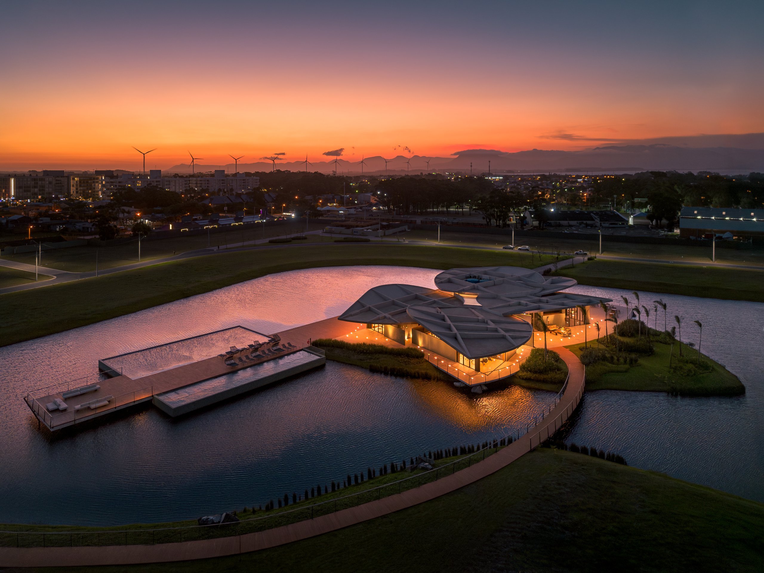 A flor de lótus é a origem conceitual dos traços arquitetônicos elegantes e harmônicos, batizando o empreendimento e reconfigurando a interação das pessoas e das edificações no microespaços urbano planejado. Uma ilha em um lago artificial recebe todas as áreas de convívio e é dela que brotam lajes curvas protendidas, passarelas e edificações inspiradas em pétalas que se espelham na água. Como uma flor de lótus, a impressão biofílica propõe uma arquitetura que se mimetiza à natureza e impacta pela simplicidade.