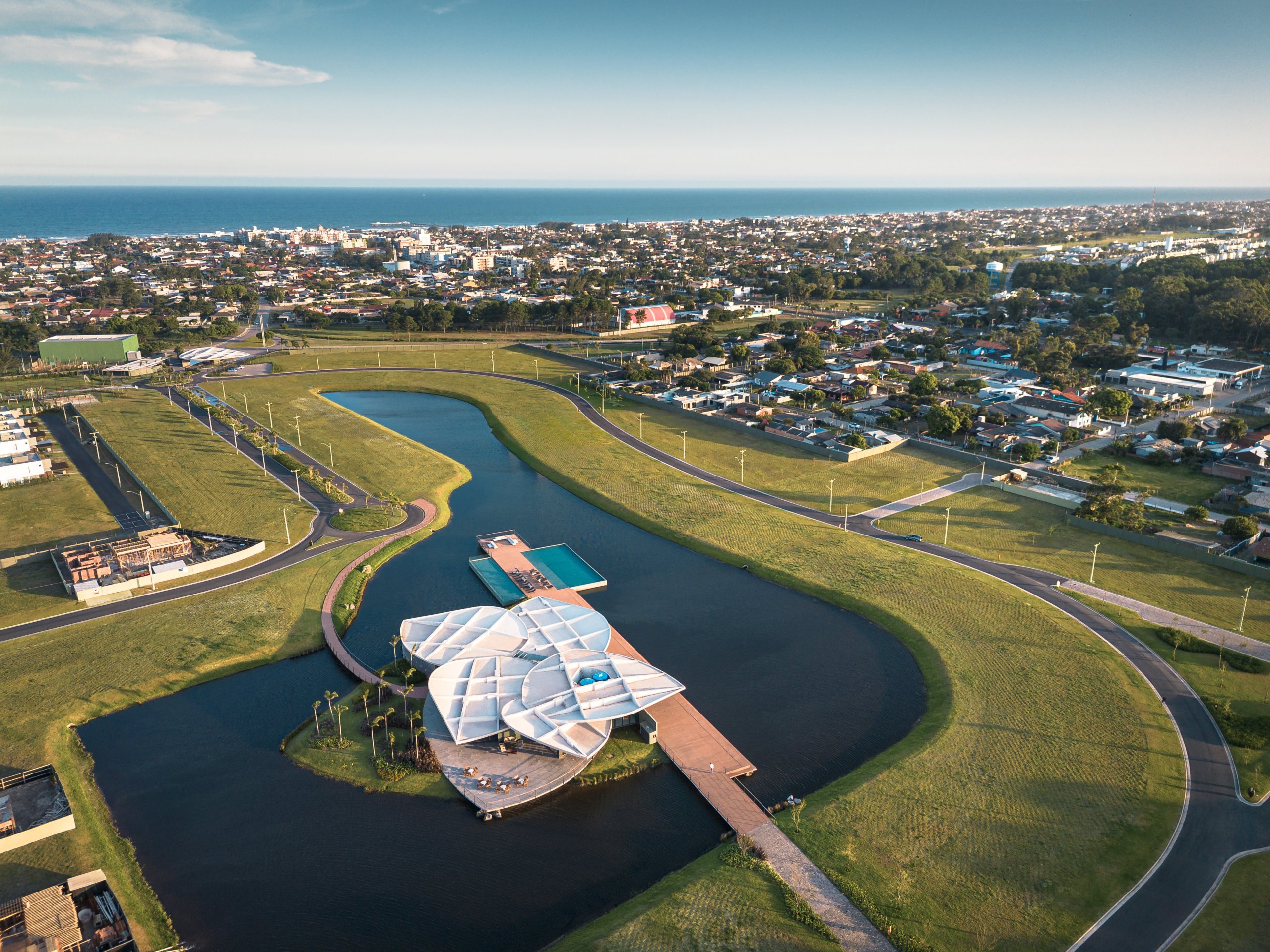 É também a partir da ilha que se organizam os lotes – e, portanto, todas as futuras casas – oferecendo uma experiência de caminhabilidade e conexão inéditas na região. Visto de cima, o condomínio ilustra a metáfora de uma flor que desabrocha – a partir dos telhados e volumes centrais circulares das áreas comuns – e se ramifica – nas passarelas suspensas, pontes, calçadas e ruas que conectam todas as moradias.