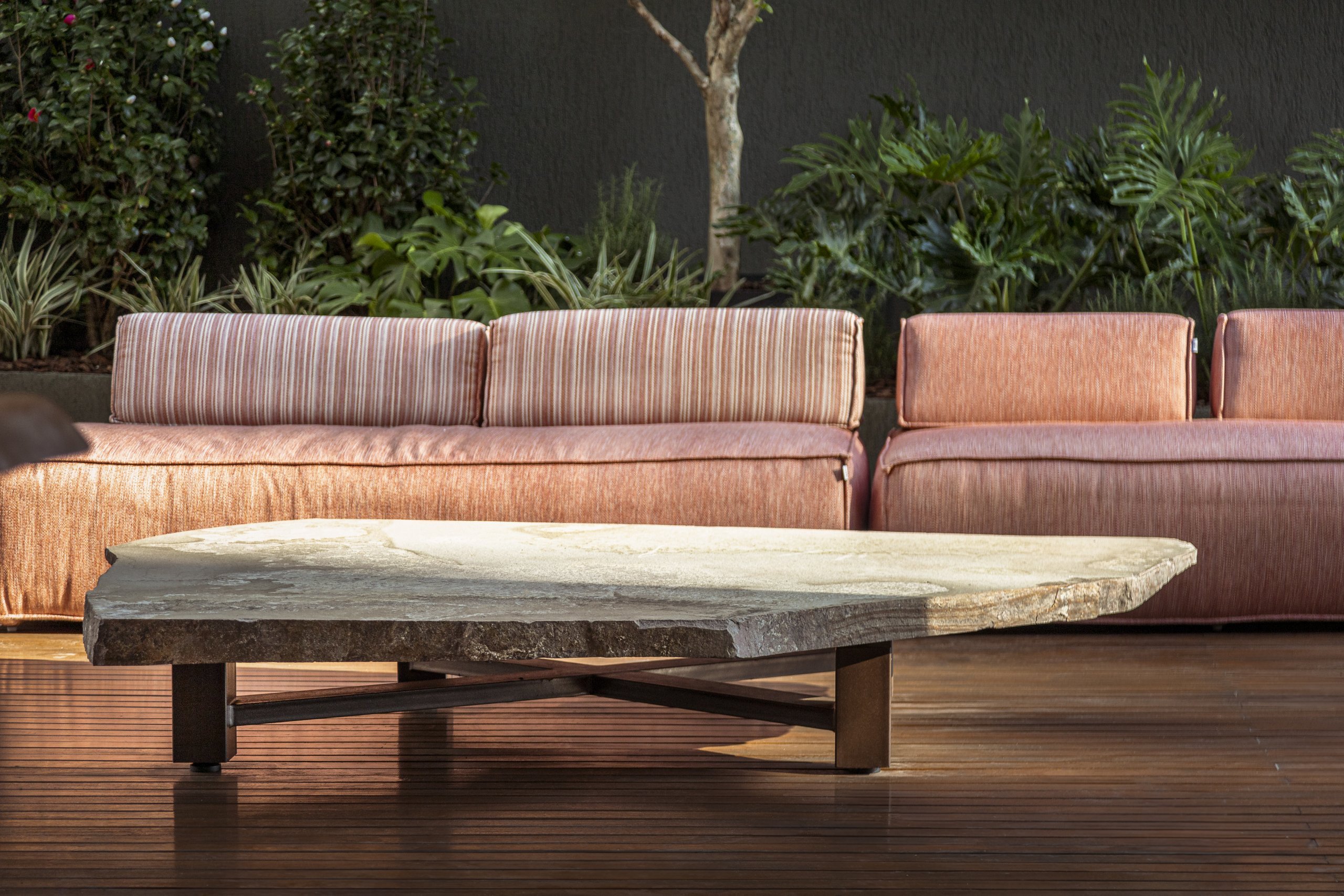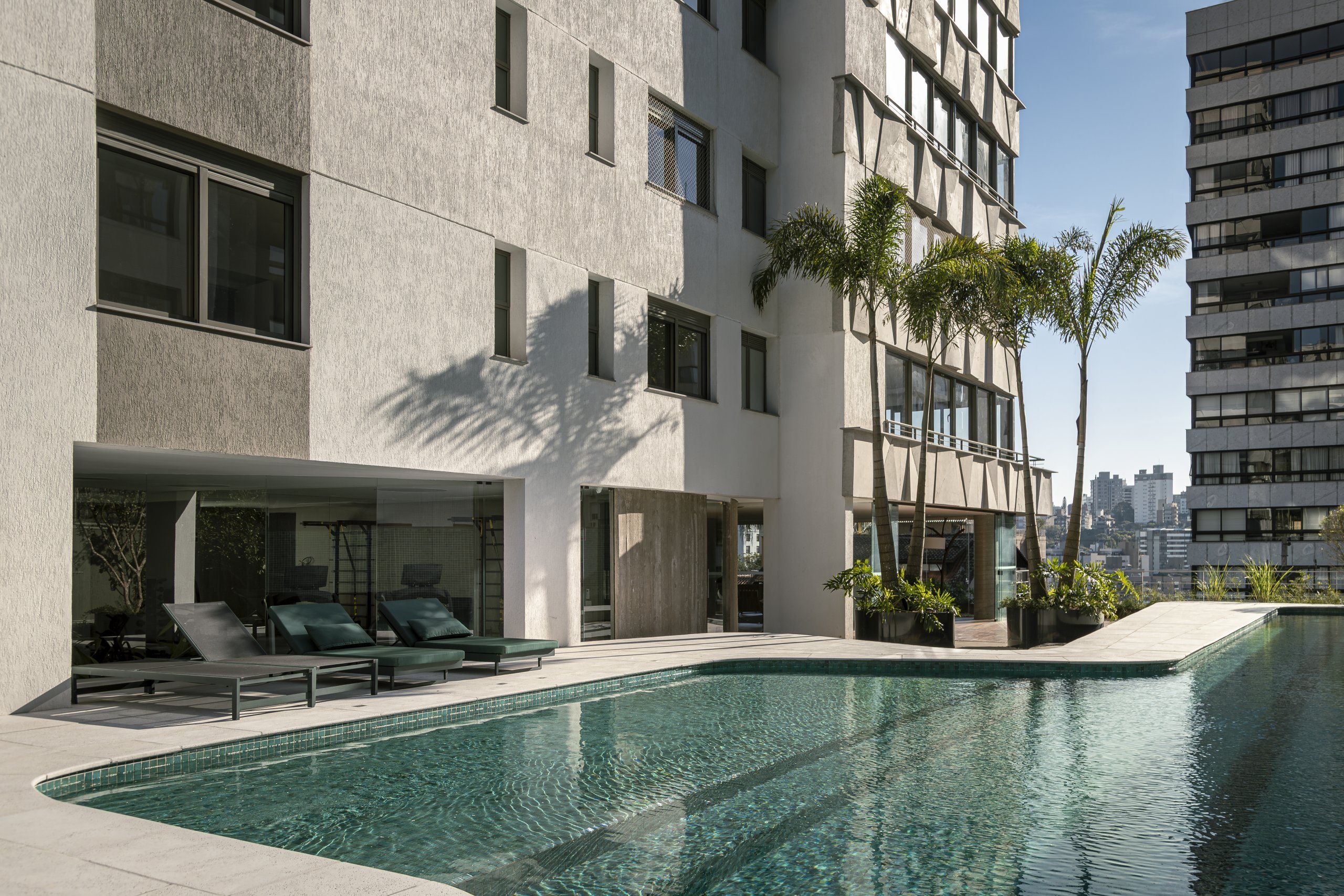 Nos jardins, assinados pela paisagista Susana Nedel, espécies nativas se adensam para garantir mais privacidade e reforçar o aconchego. O deck incentiva o banho de sol e leva à piscina aquecida com raia de 25m que convida a largas braçadas. A brinquedoteca montessoriana, o playground ao ar livre e os amplos gramados engrandecem a área de convívio e possibilitam um espaço protegido e seguro fora de casa. O recanto pet reserva um local exclusivo para exercitar e divertir os animais de estimação com um mobiliário específico e um cercamento que permite que eles corram livremente e em segurança.